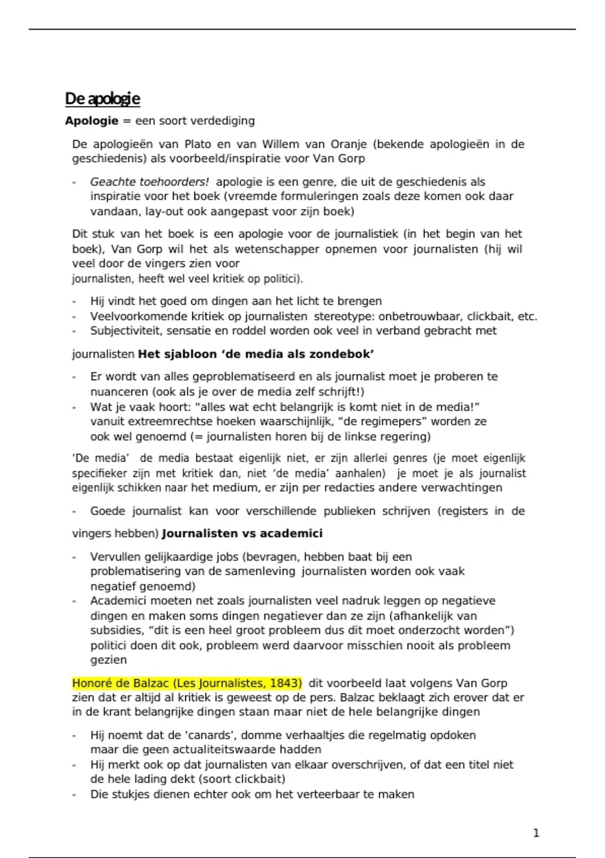 Collegedictaat van 162 pagina's voor het vak journalism studies aan de KUB (alle lessen)
