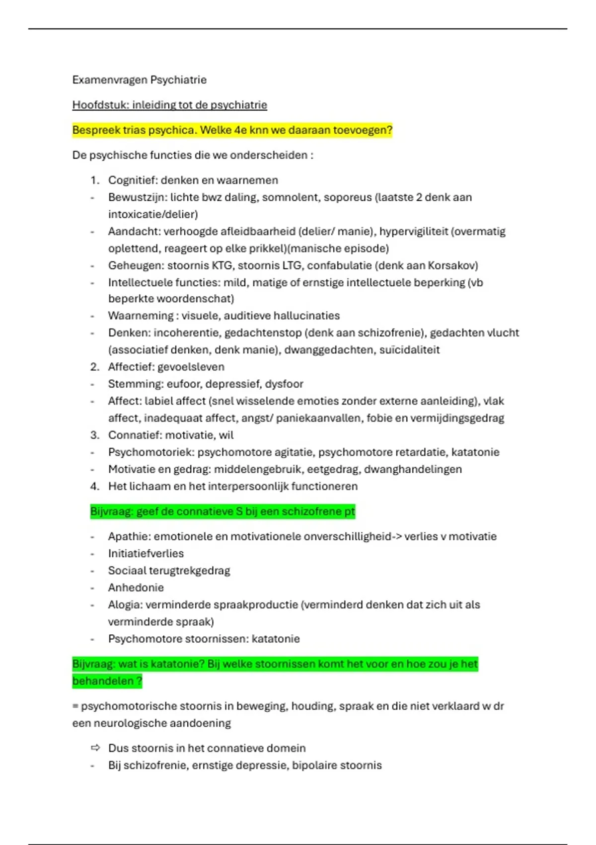 Examenvragen Psychiatrie