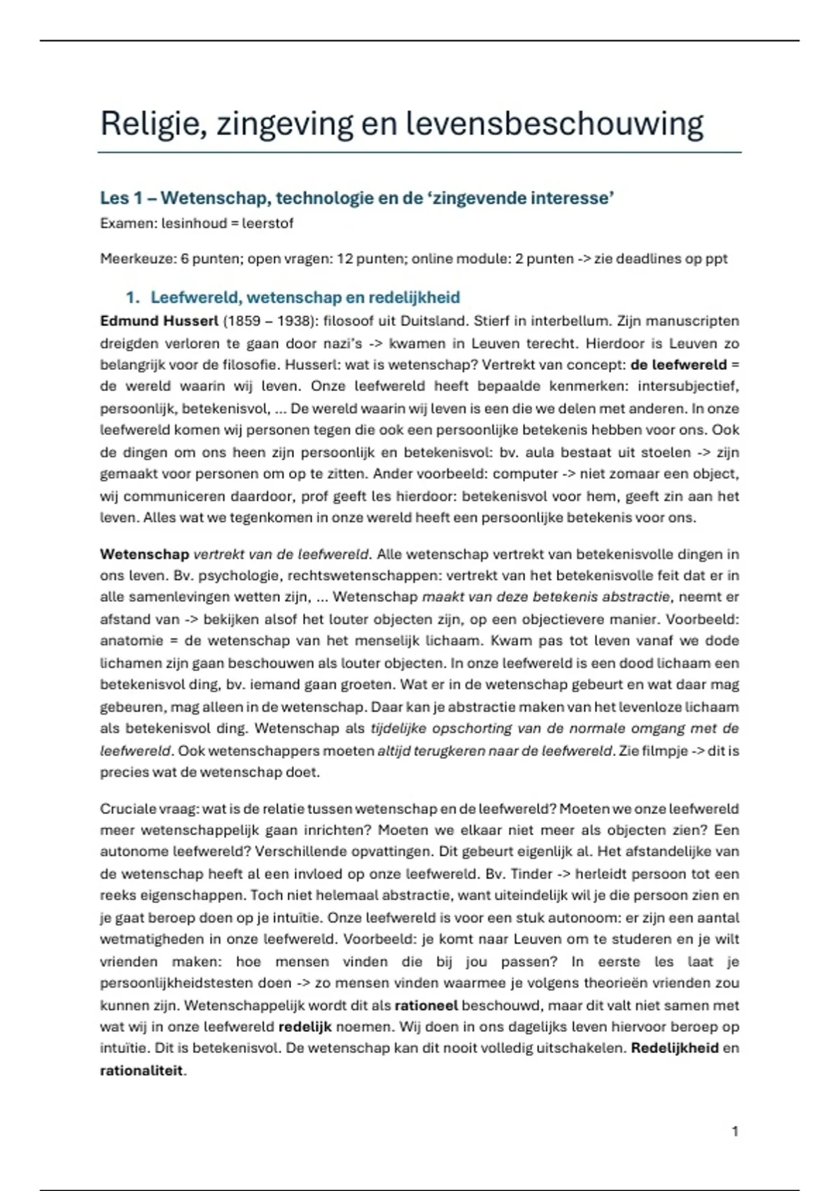 1. Leefwereld, wetenschap en redelijkheid