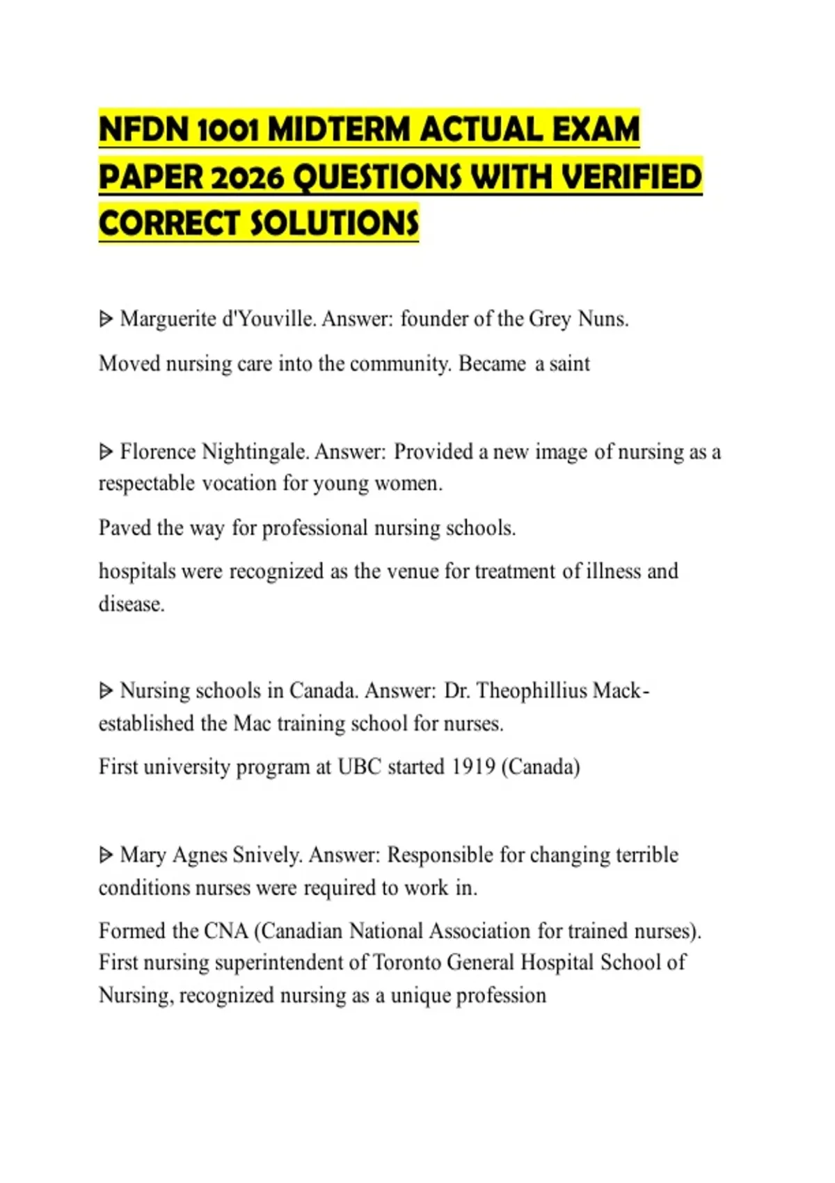 NFDN 1001 MIDTERM ACTUAL EXAM PAPER 2026 QUESTIONS WITH VERIFIED CORRECT SOLUTIONS