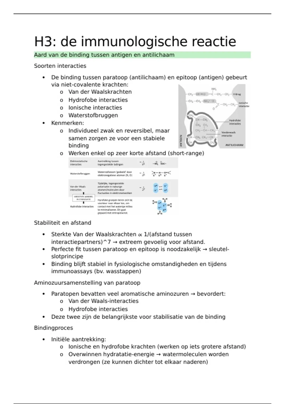 o Ionische en hydrofobe krachten (werken op iets grotere afstand)