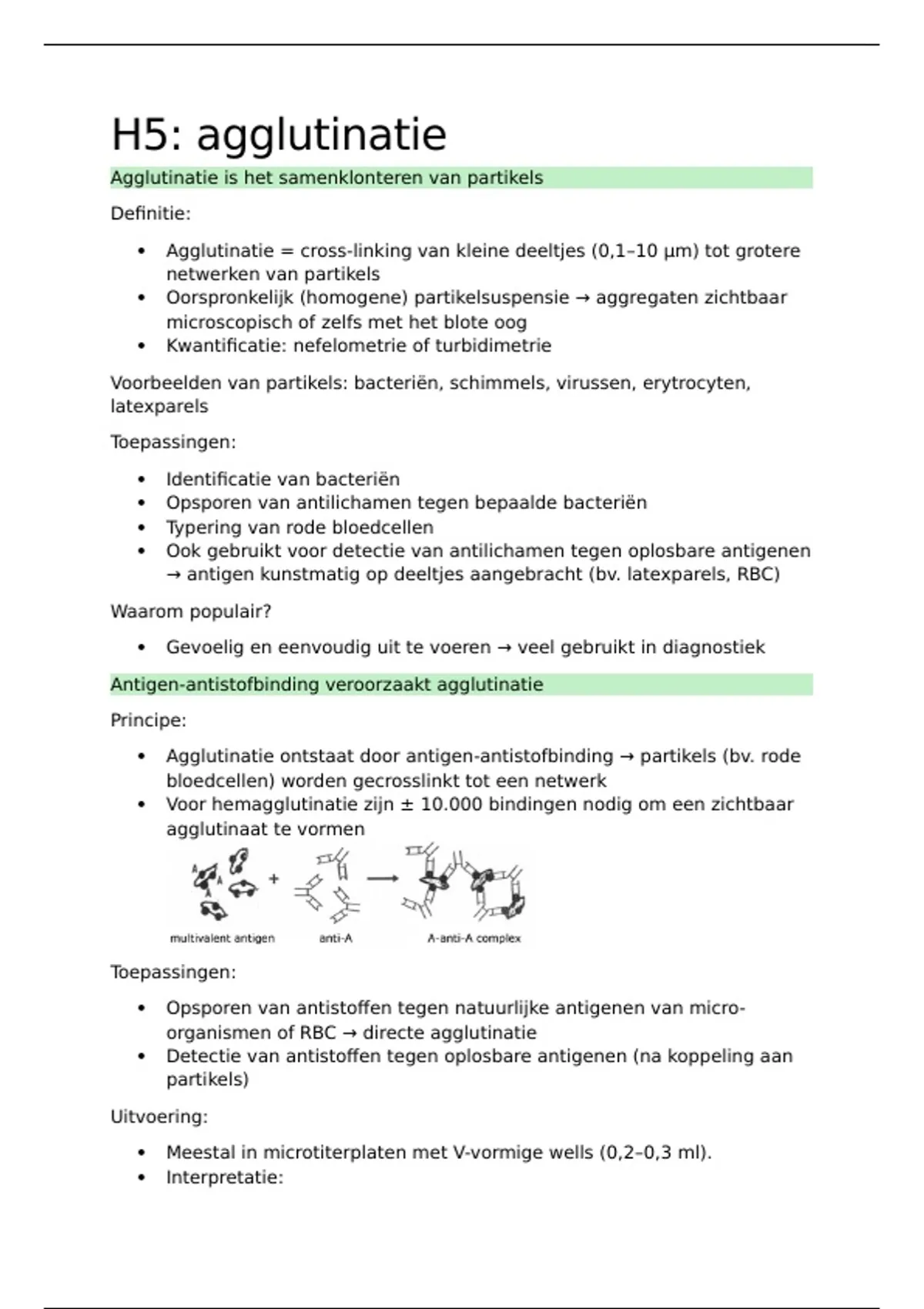 volledige samenvatting van het boek (H5: agglutinatie) en lesnotities voor het vak immunologische technieken (UCLLeuven)