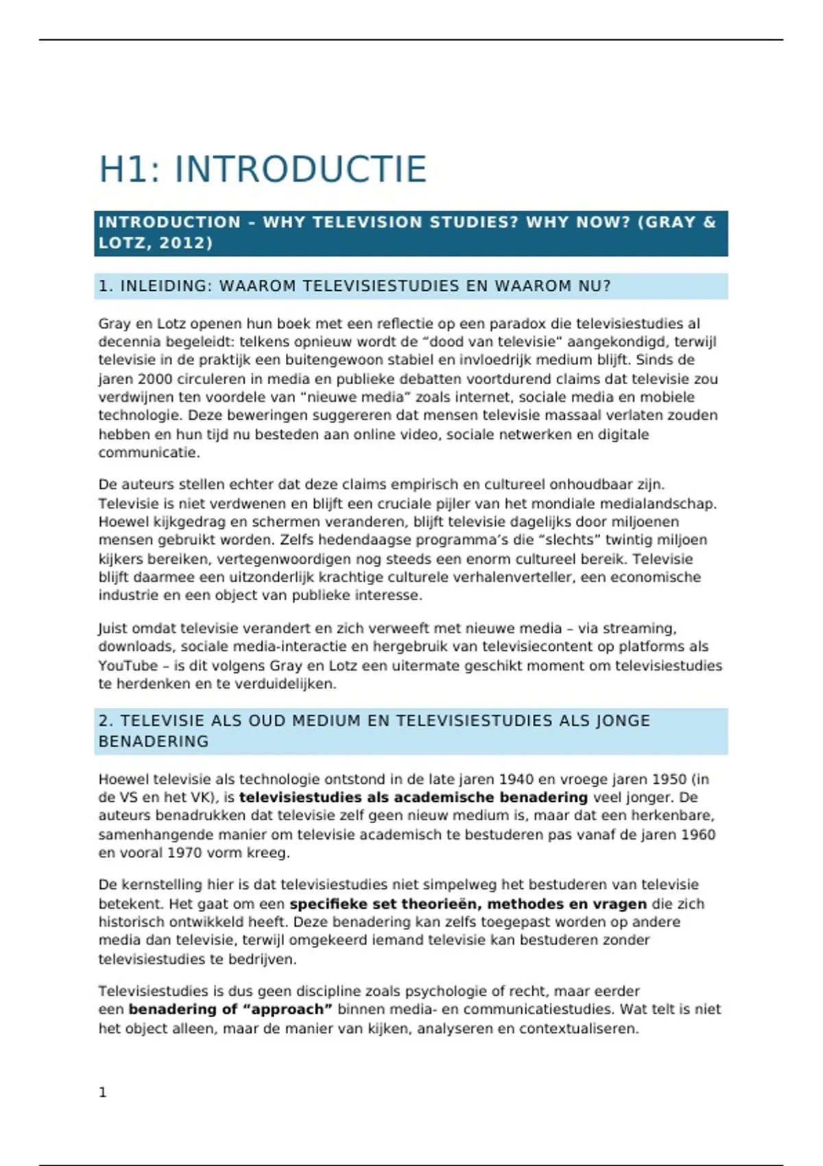 1. INLEIDING: HET ONTSTAAN EN DOEL VAN TELEVISION STUDIES