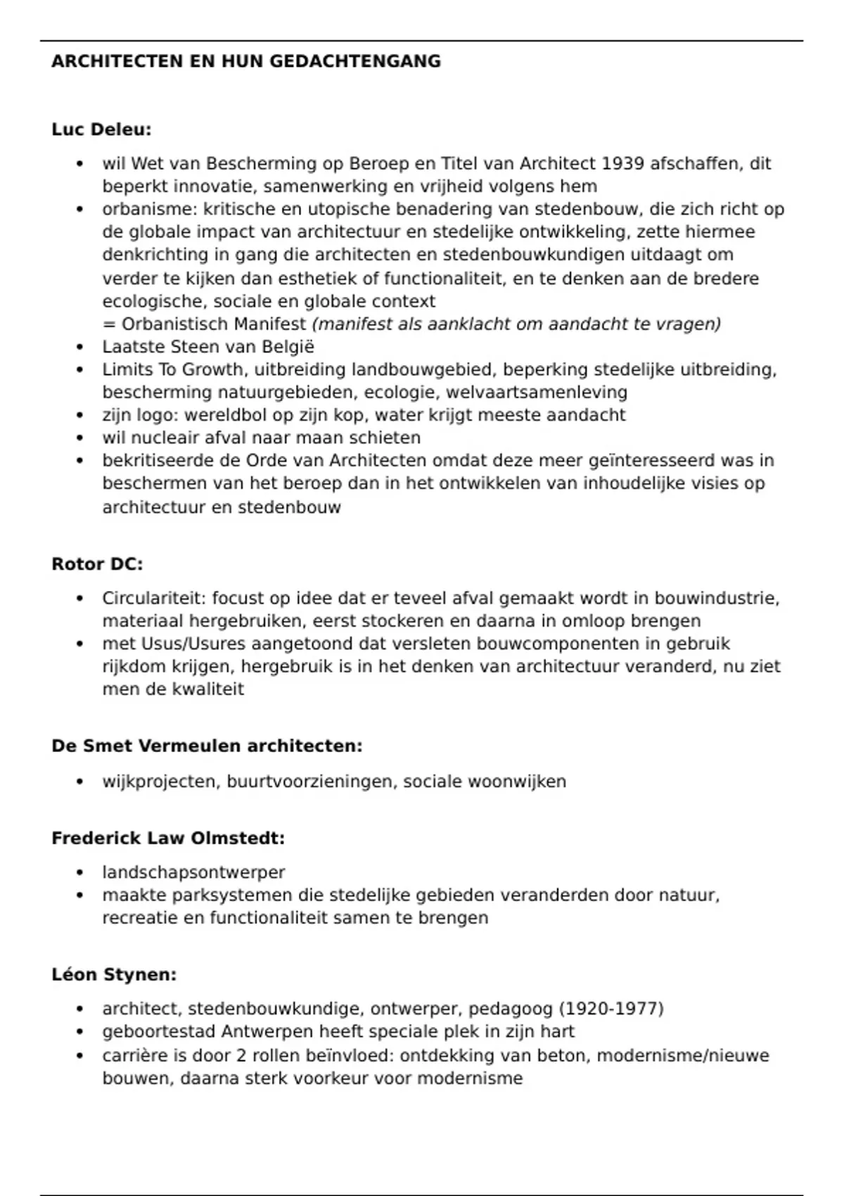 Samenvatting architectuuractualia gedachtengang van alle architecten