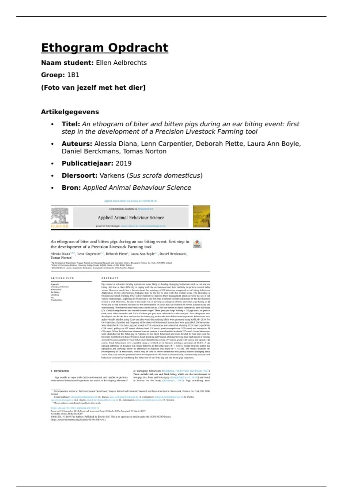  Titel: An ethogram of biter and bitten pigs during an ear biting event: first