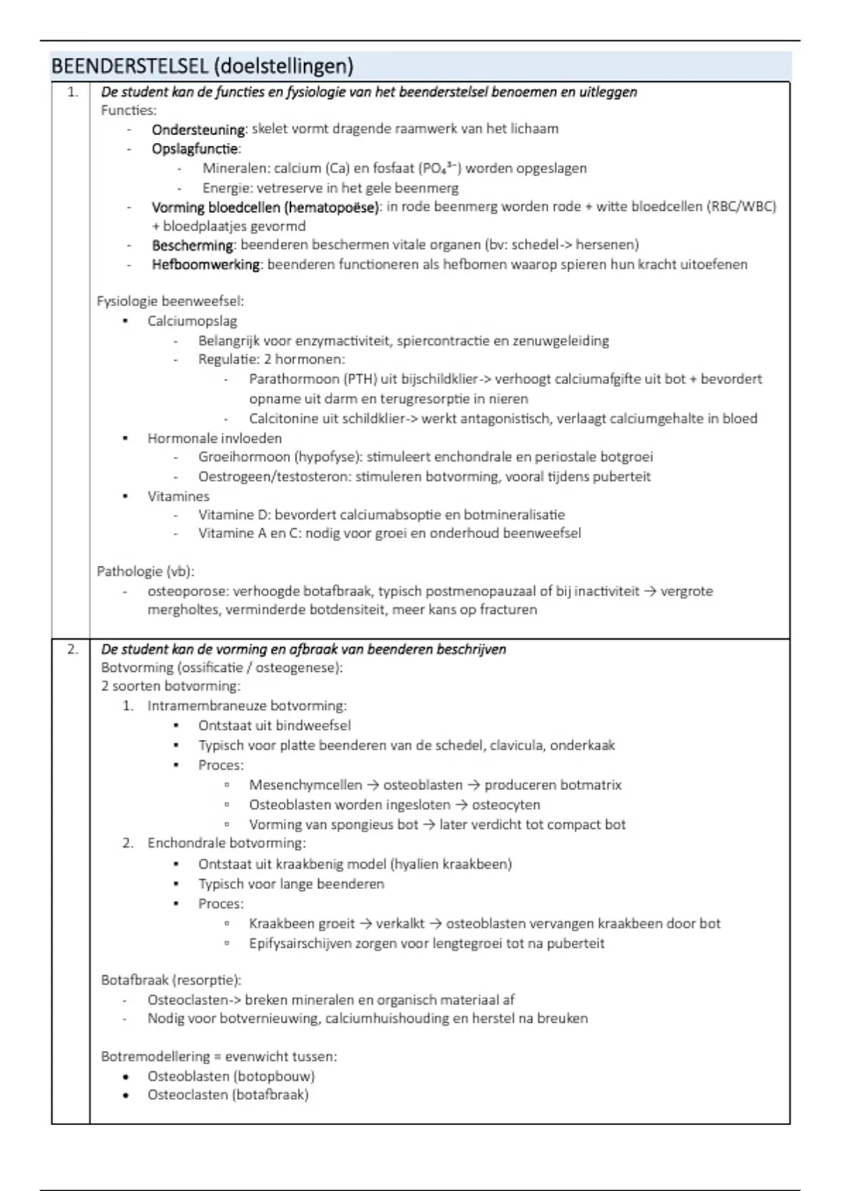 1. De student kan de func es en fysiologie van het beenderstelsel benoemen en uitleggen