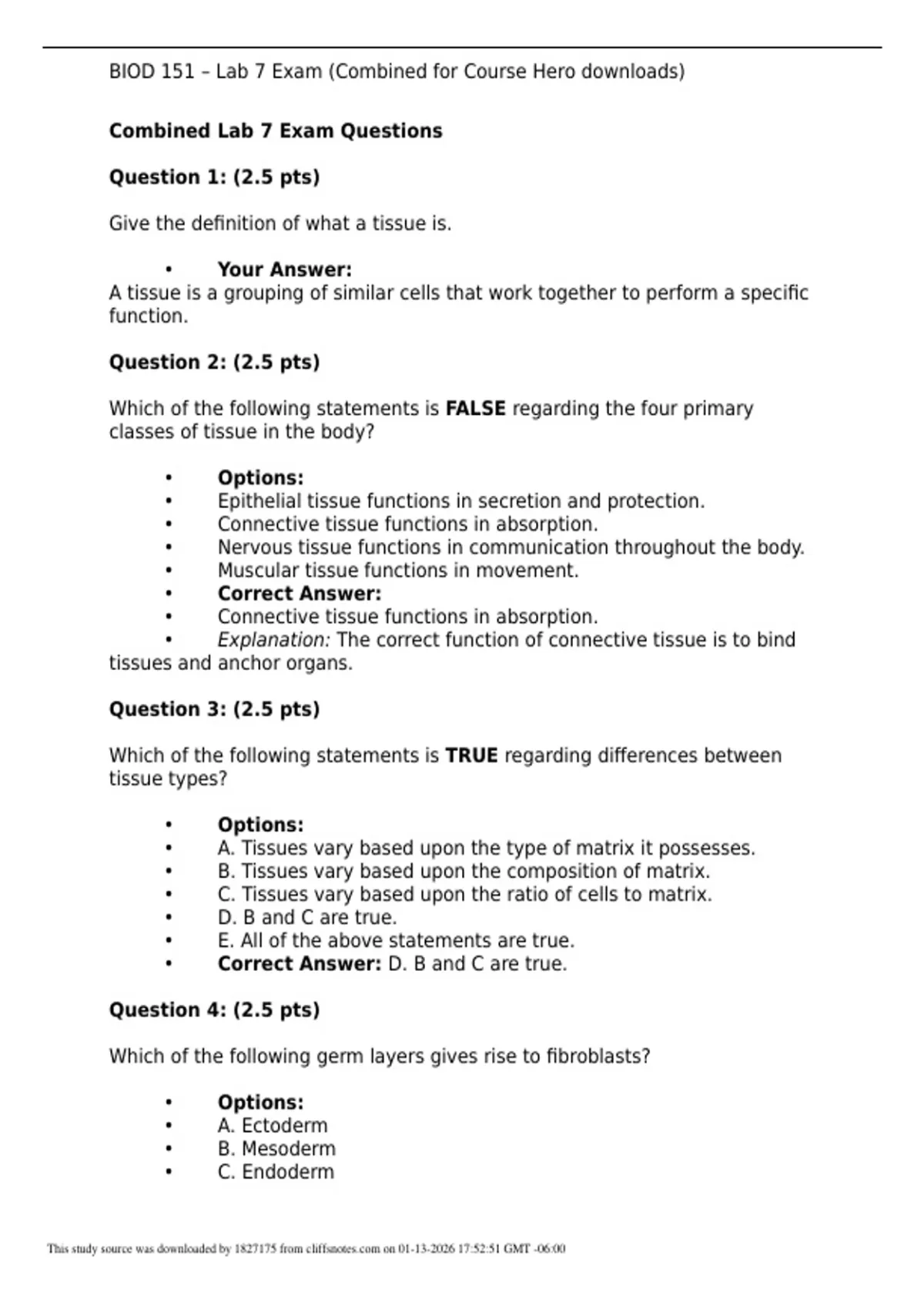 BIOD 151 – Lab 7 Exam (Combined for Course Hero downloads)
