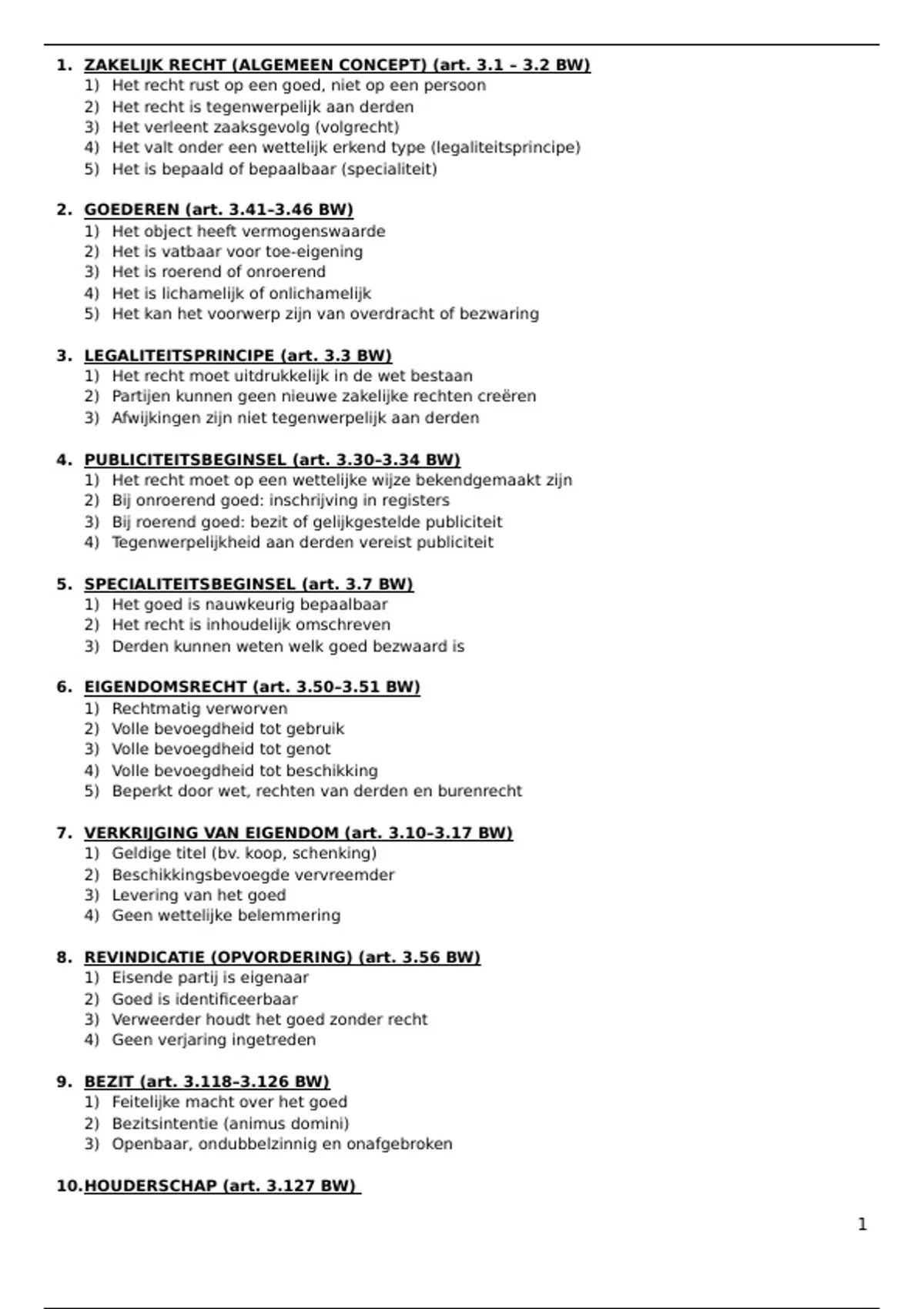 1. ZAKELIJK RECHT (ALGEMEEN CONCEPT) (art. 3.1 – 3.2 BW)