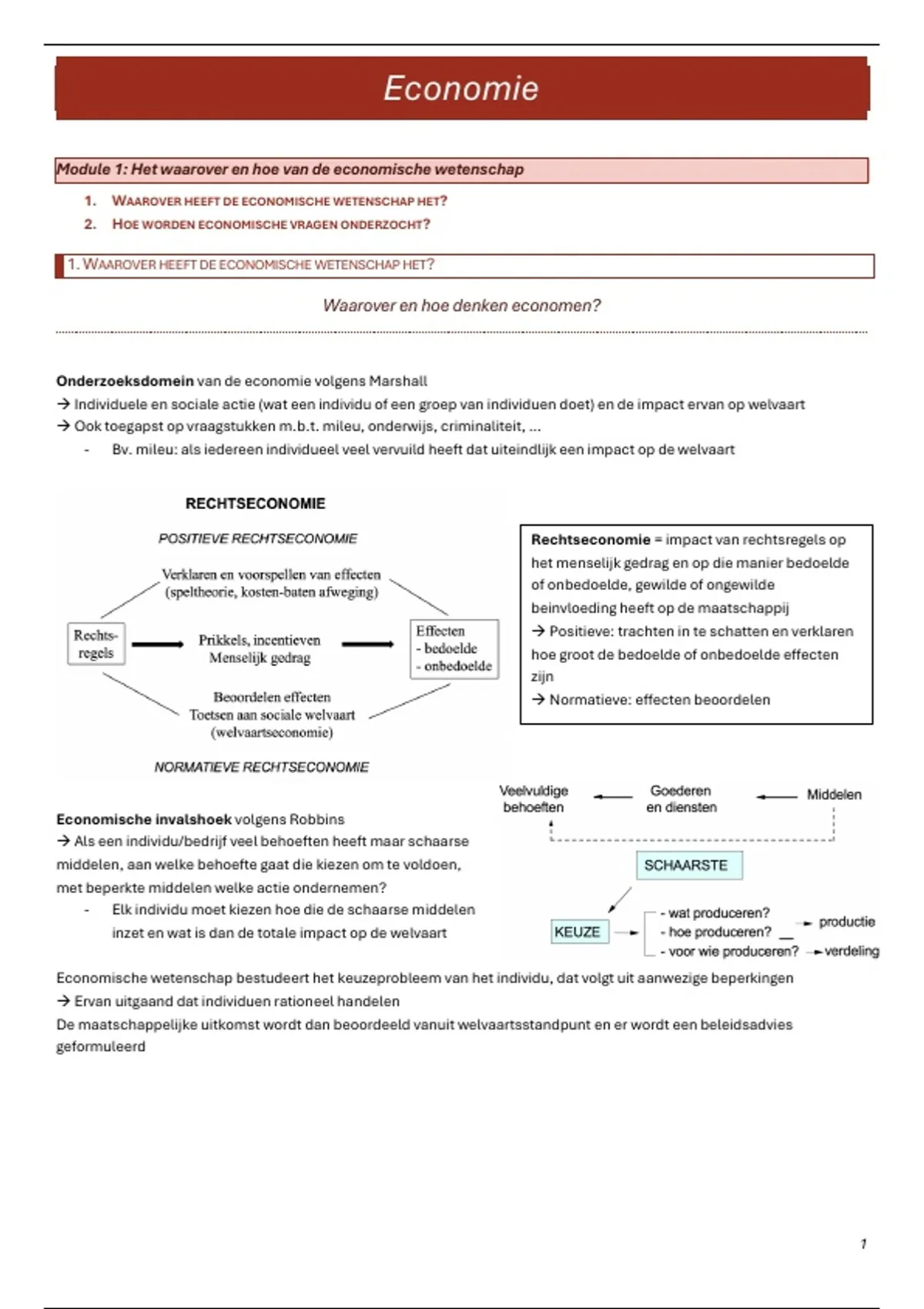 Module 1: Het waarover en hoe van de economische wetenschap