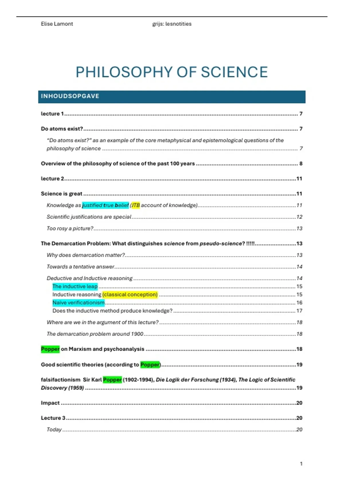 Summary SV philosophy of science (slides + volledige lesnotities + inhoudstafel)