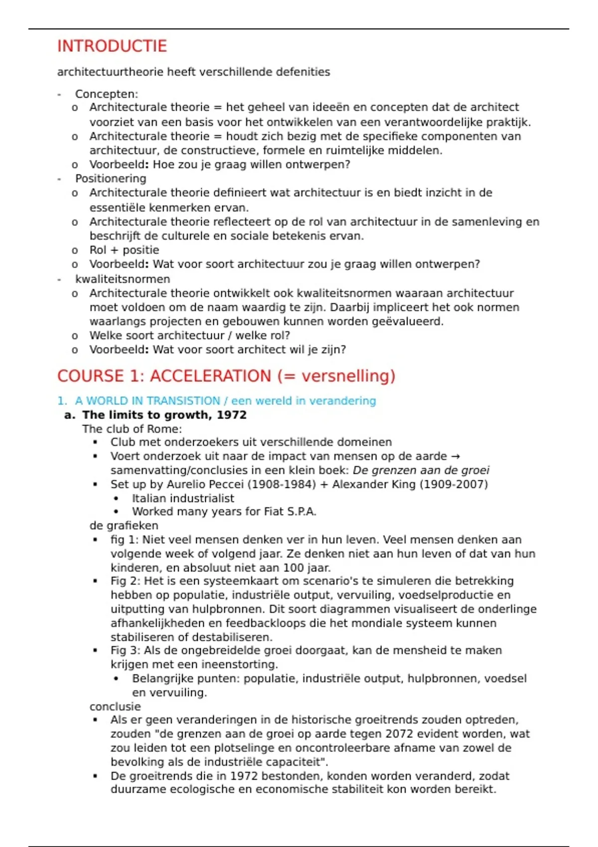 o Architecturale theorie = houdt zich bezig met de specifieke componenten van