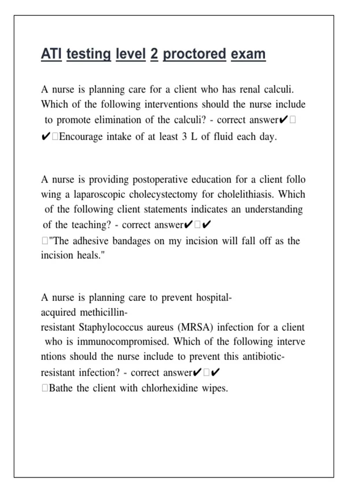 ATI Testing Level 2 Proctored Exam – Complete 2025 / 2026 Questions with 100% Verified Correct Answers | Latest Updated Version