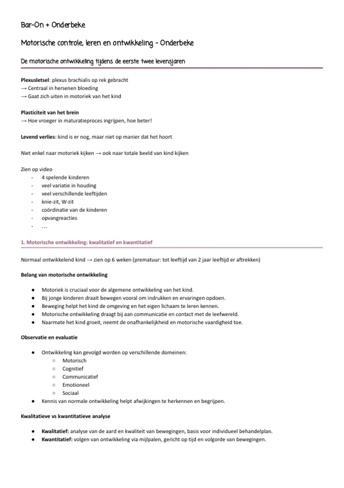 Samenvatting - Bar-On + Onderbeke, Motorische Controle leren en ontwikkeling (D012720A)