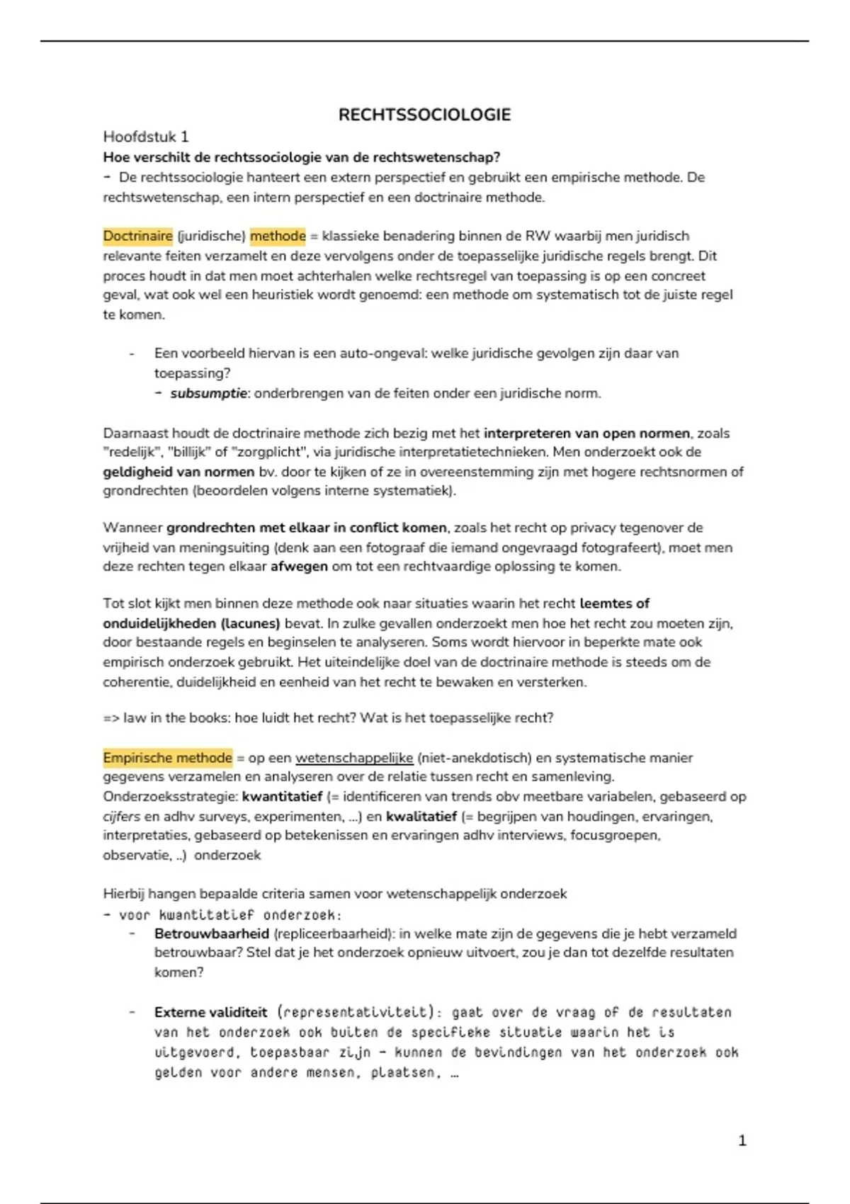 → De rechtssociologie hanteert een extern perspectief en gebruikt een empirische methode. De
