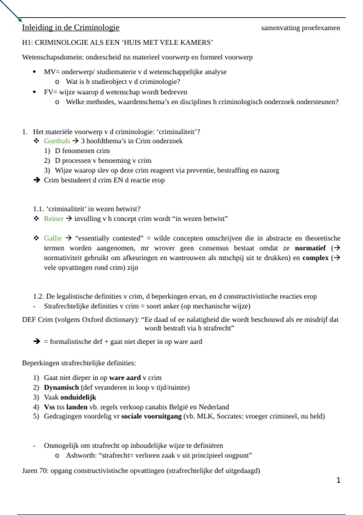 H1: CRIMINOLOGIE ALS EEN ‘HUIS MET VELE KAMERS’