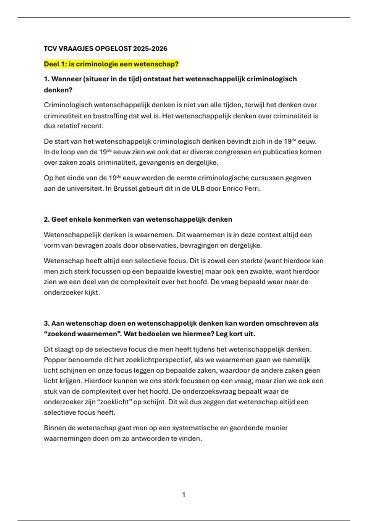 1. Wanneer (situeer in de tijd) ontstaat het wetenschappelijk criminologisch