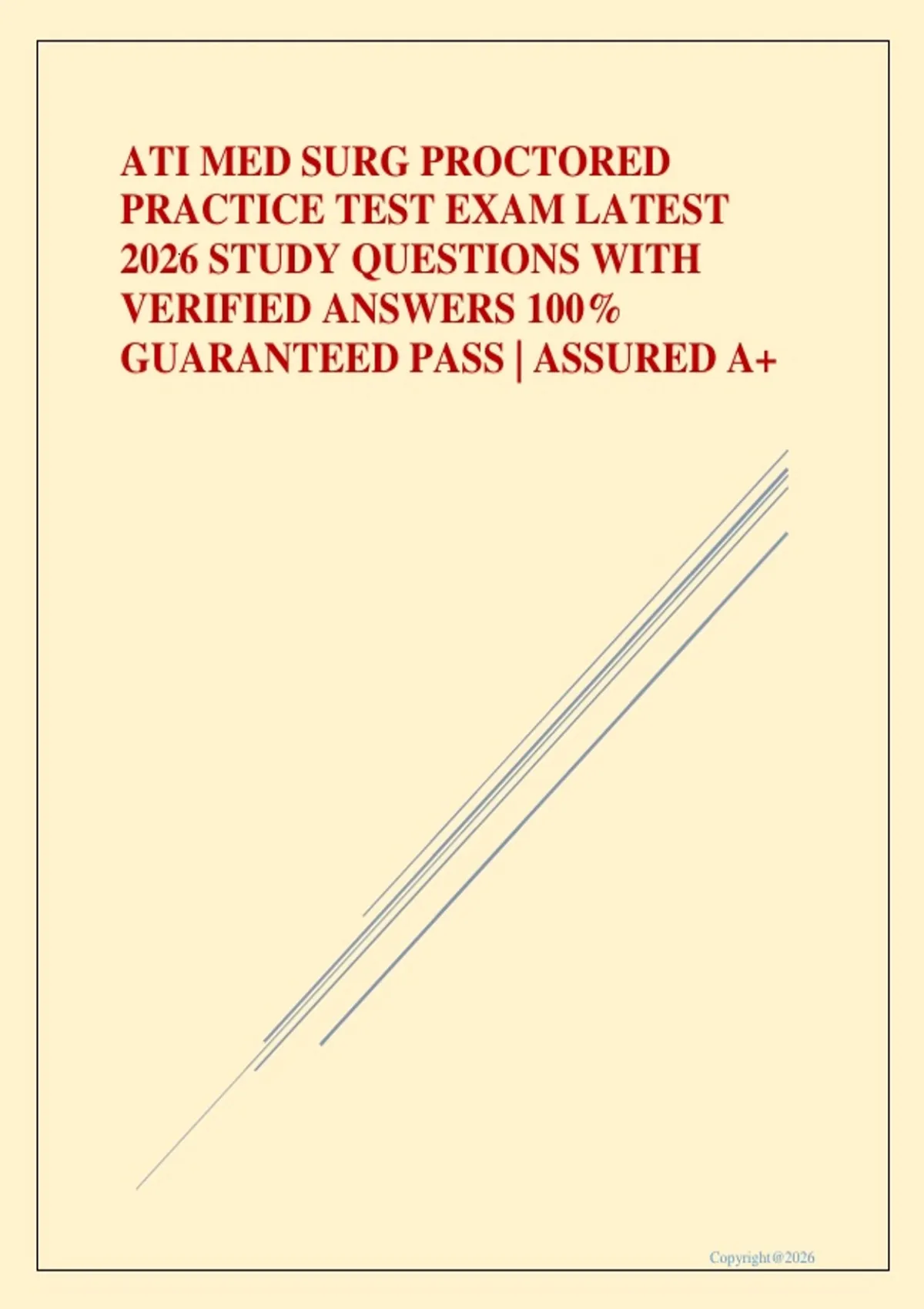 ATI MED SURG PROCTORED PRACTICE TEST EXAM LATEST 2026 STUDY QUESTIONS WITH VERIFIED ANSWERS 100% GUARANTEED PASS | ASSURED A+
