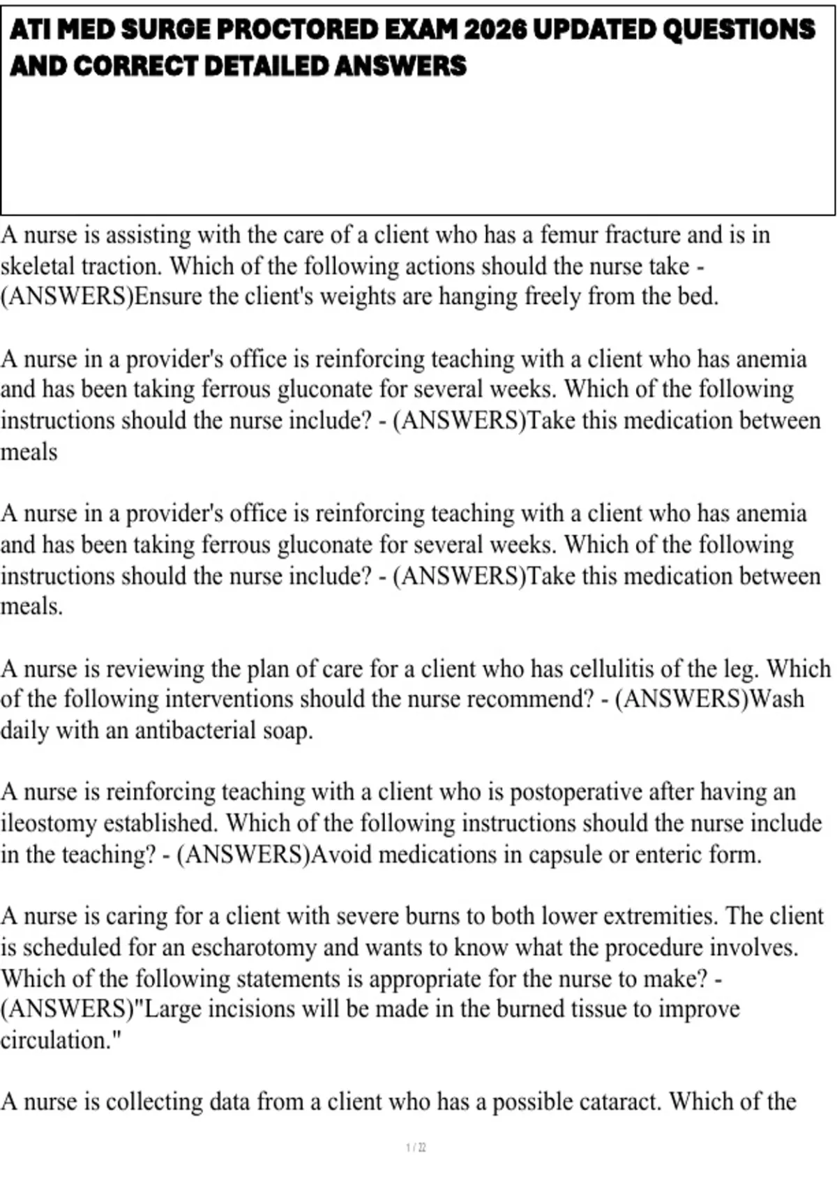 ATI MED SURGE PROCTORED EXAM 2026 UPDATED QUESTIONS AND CORRECT DETAILED ANSWERS