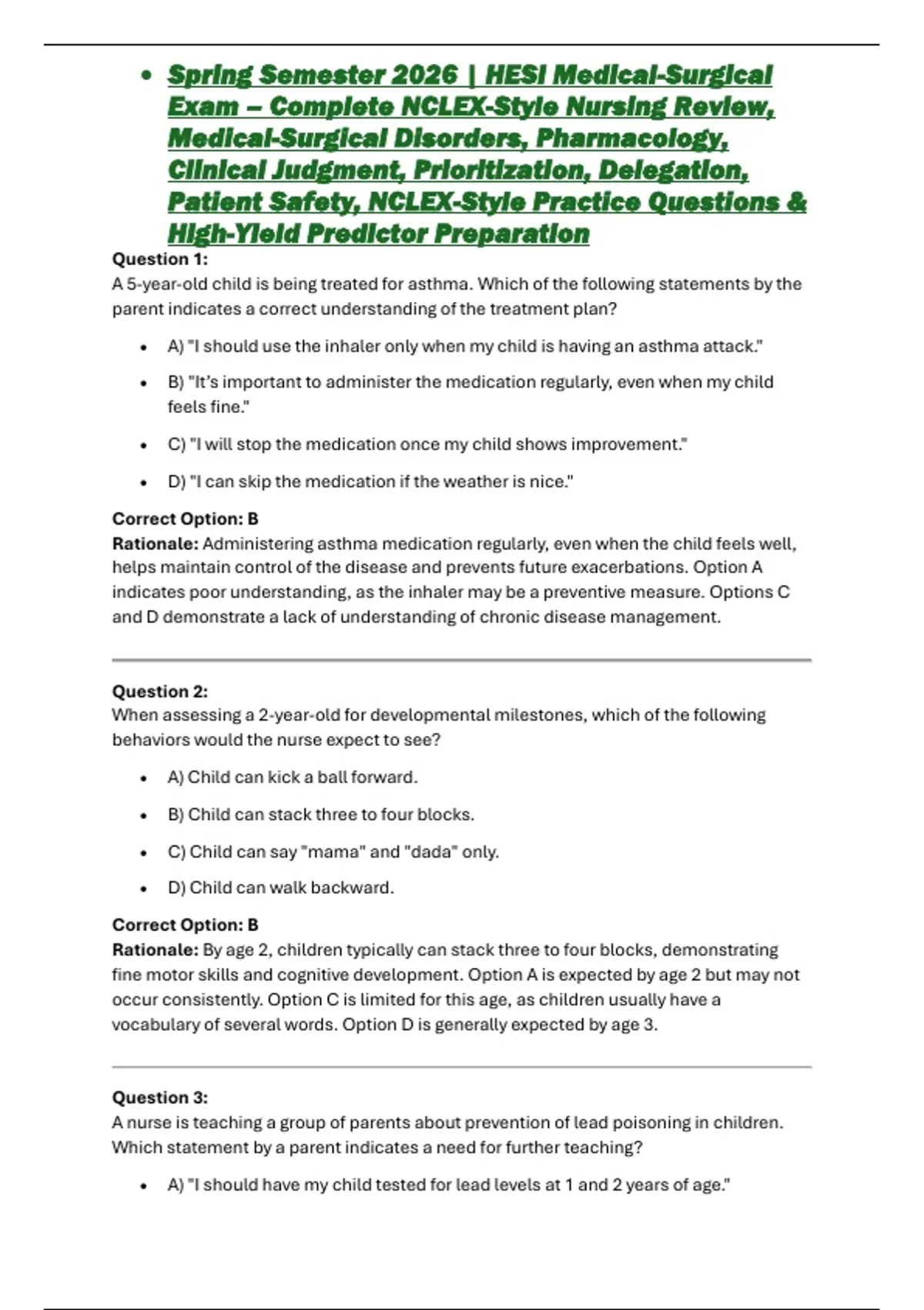 Spring Semester 2026 | HESI Medical-Surgical Exam – Complete NCLEX-Style Nursing Review, Medical-Surgical Disorders, Pharmacology, Clinical Judgment, Prioritization, Delegation, Patient Safety, NCLEX-Style Practice Questions & High-Yield Predictor Prepara