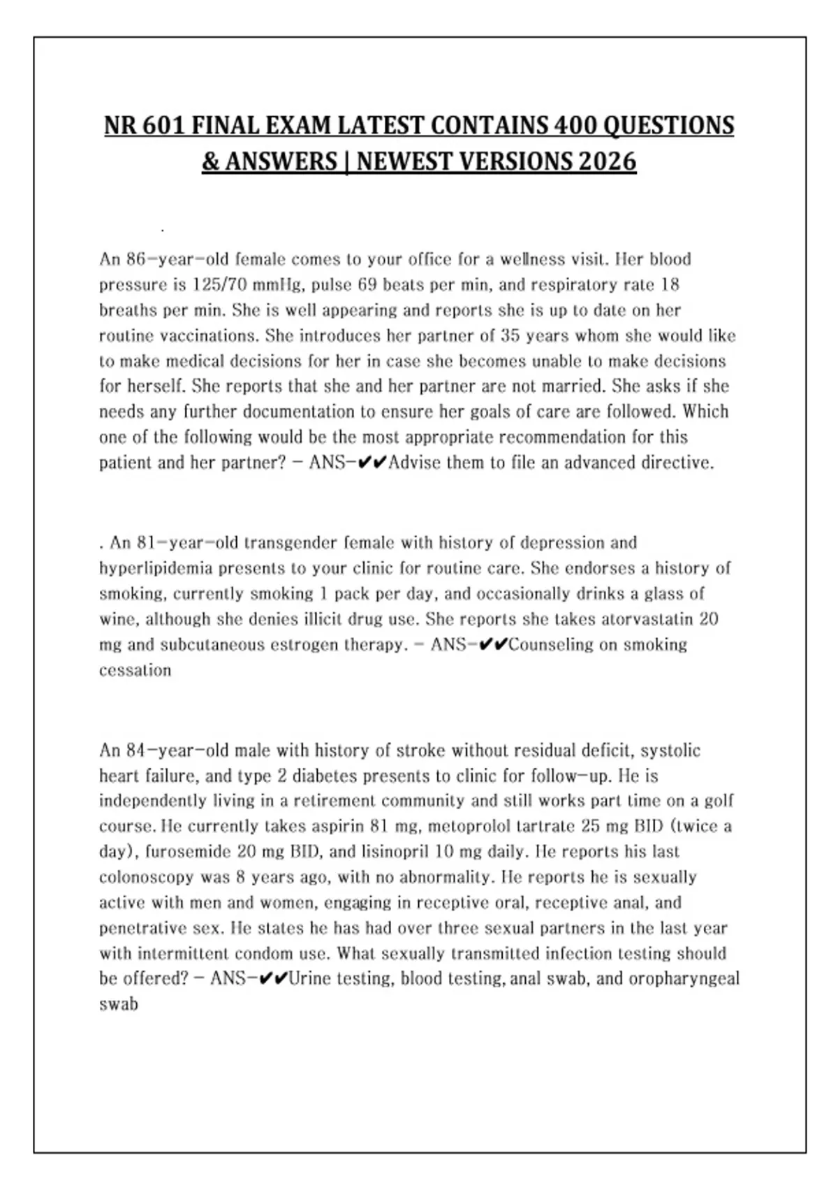 NR 601 FINAL EXAM LATEST CONTAINS 400 QUESTIONS & ANSWERS - NEWEST VERSIONS 2026