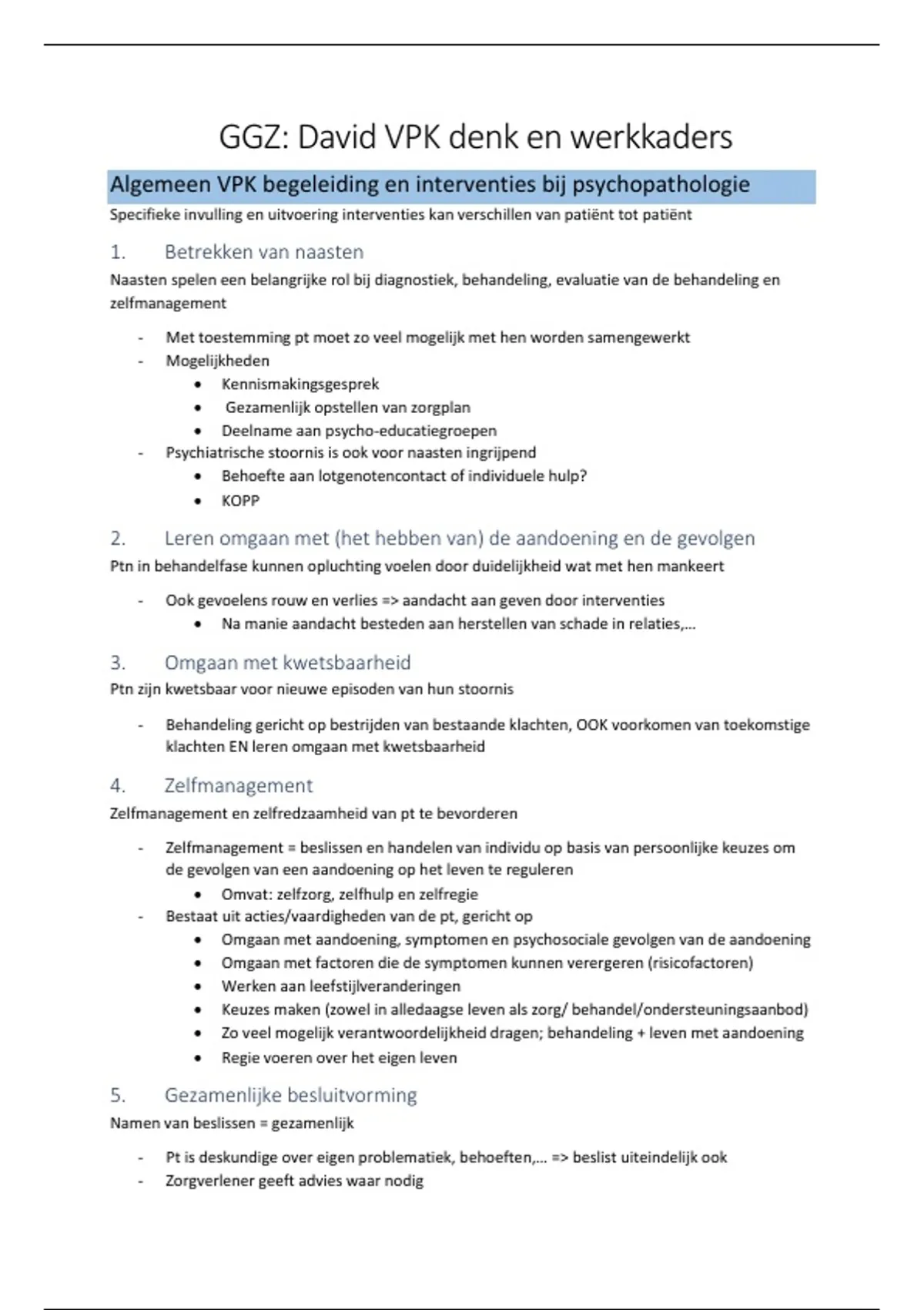 Algemeen VPK begeleiding en interventies bij psychopathologie