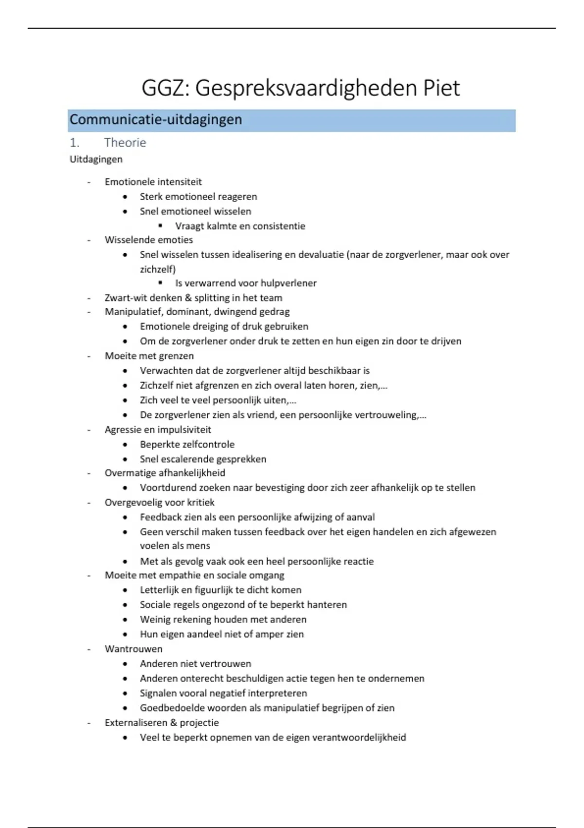 GGZ: Gespreksvaardigheden Piet