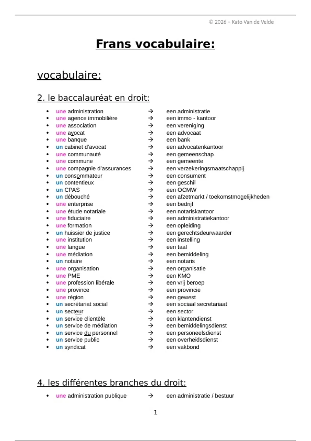 Samenvatting vocabulaire Frans