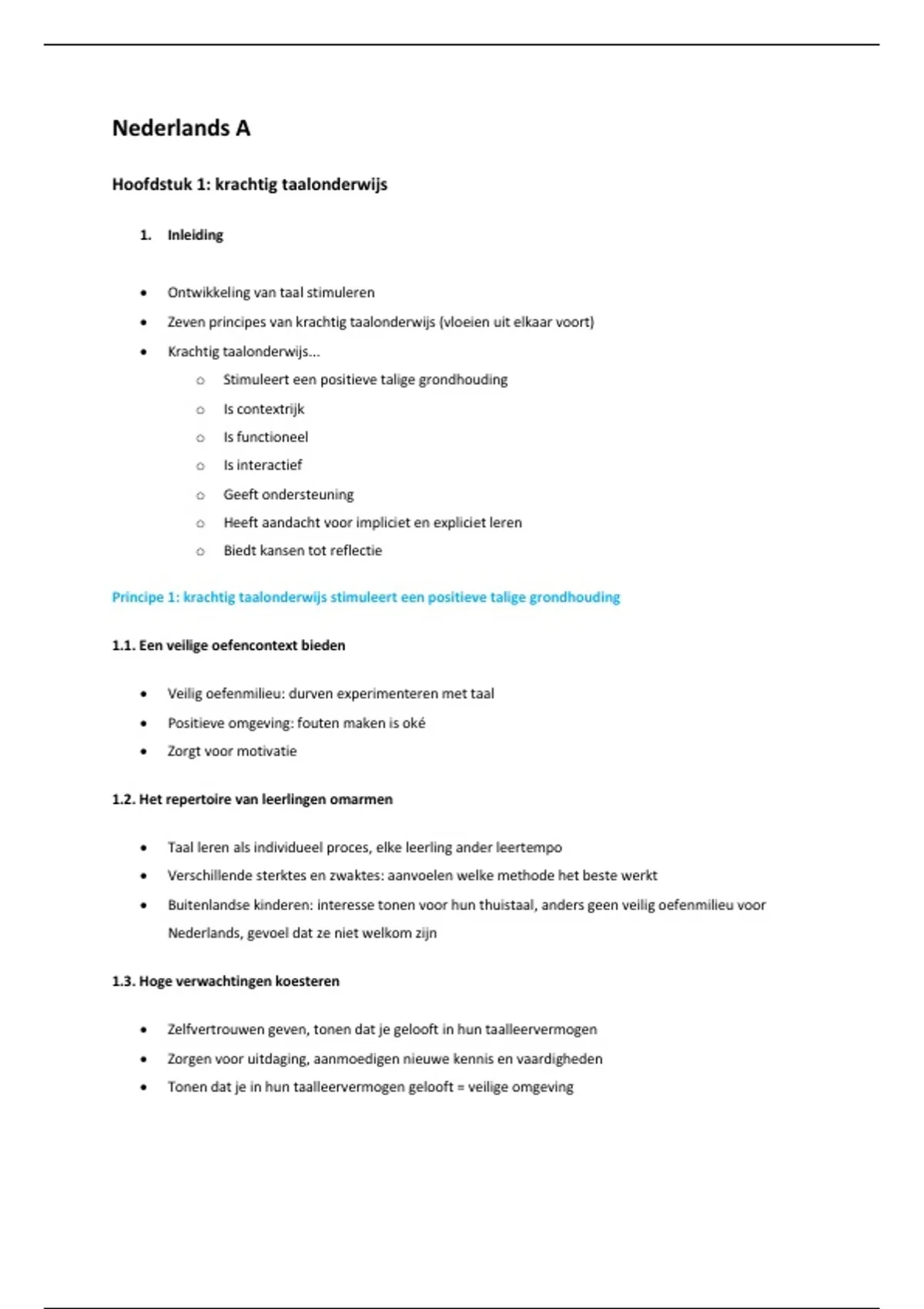 Dit is een gestructureerde samenvatting van het vak ‘Nederlands A’ dat alle PowerPoints, lesnotities en inhouden uit de syllabus omvat. De bijhorende delen uit 'Volop Taal' staan hier ook in.