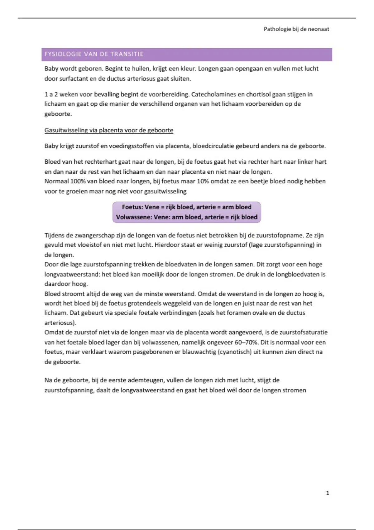 Baby krijgt zuurstof en voedingsstoffen via placenta, bloedcirculatie gebeurd anders na de geboorte.