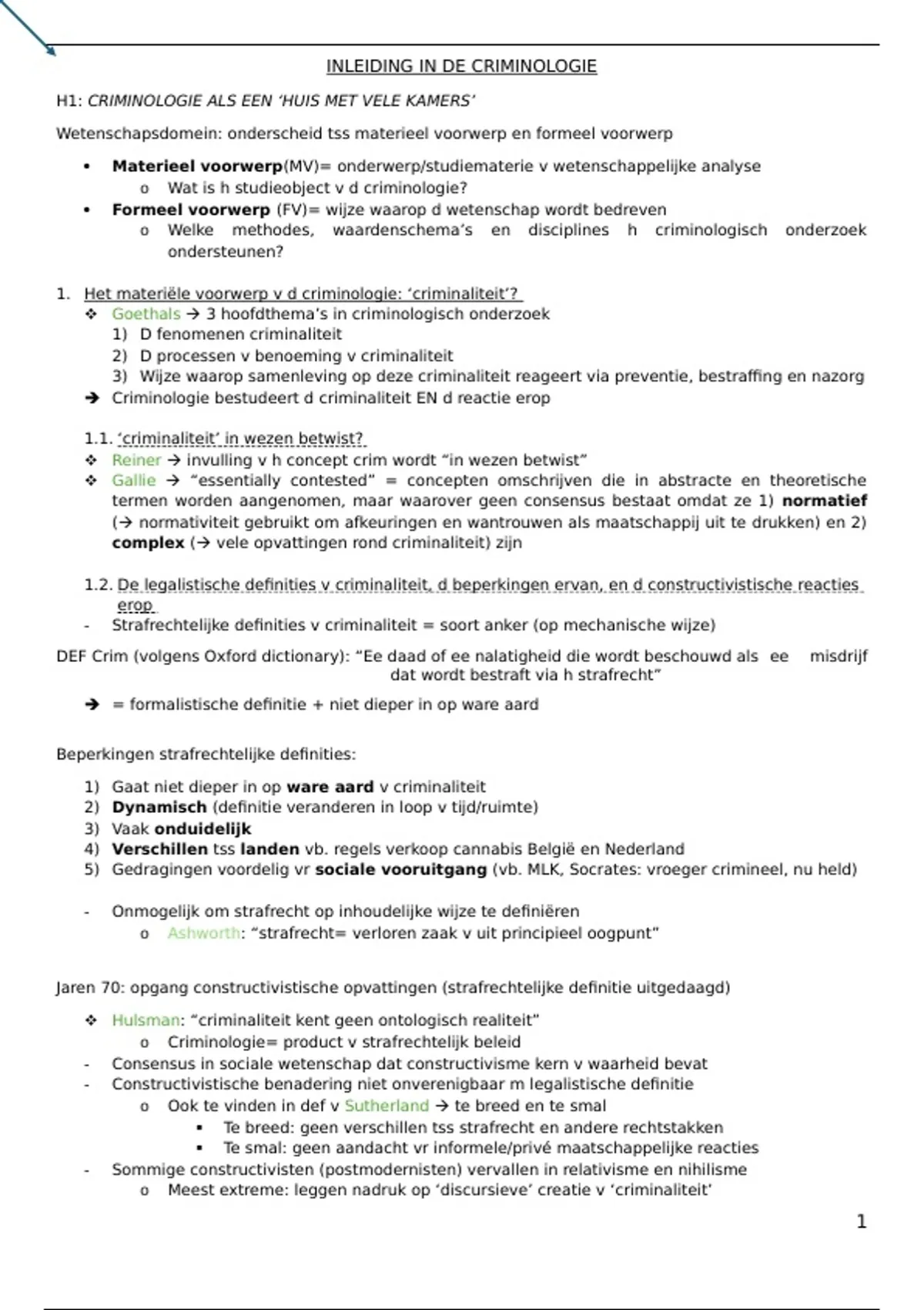 H1: CRIMINOLOGIE ALS EEN ‘HUIS MET VELE KAMERS’