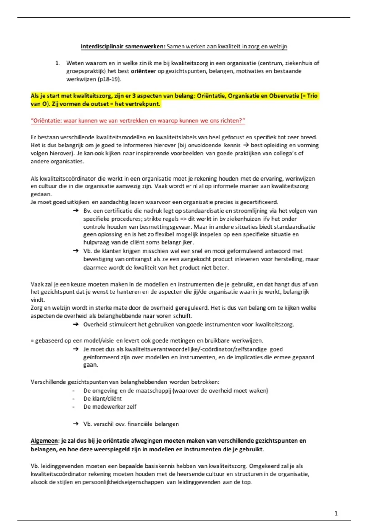 Samenvatting Beantwoordde leerdoelen - Samenwerken aan kwaliteit in zorg en welzijn - Andre Vyt