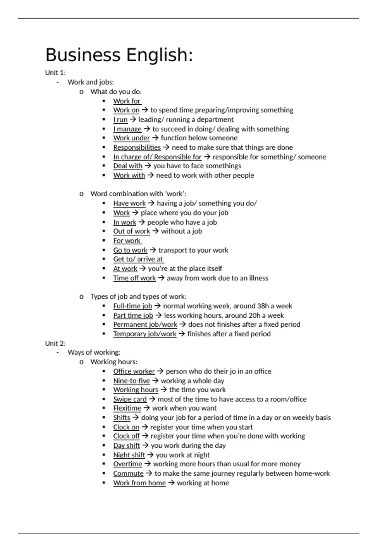 het is een samenvatting van de woordjes in Business English 1. Het is een vak van het eerste jaar KMO & Ondernemen.