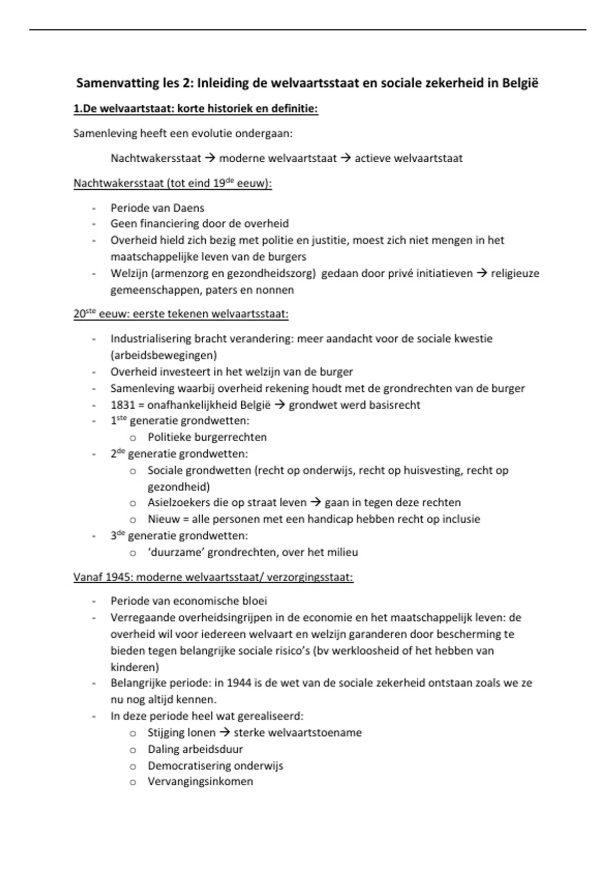 Samenvatting les 2: Inleiding de welvaartsstaat en sociale zekerheid in België
