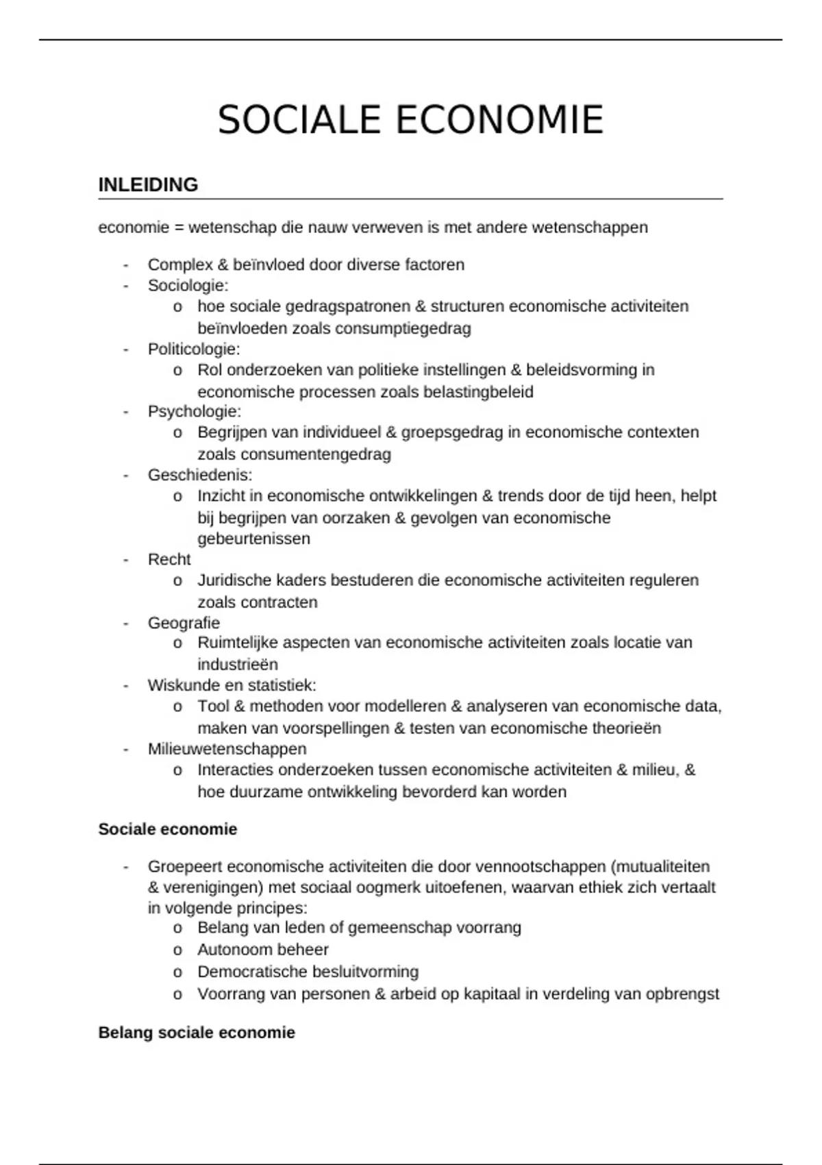 Belang sociale economie