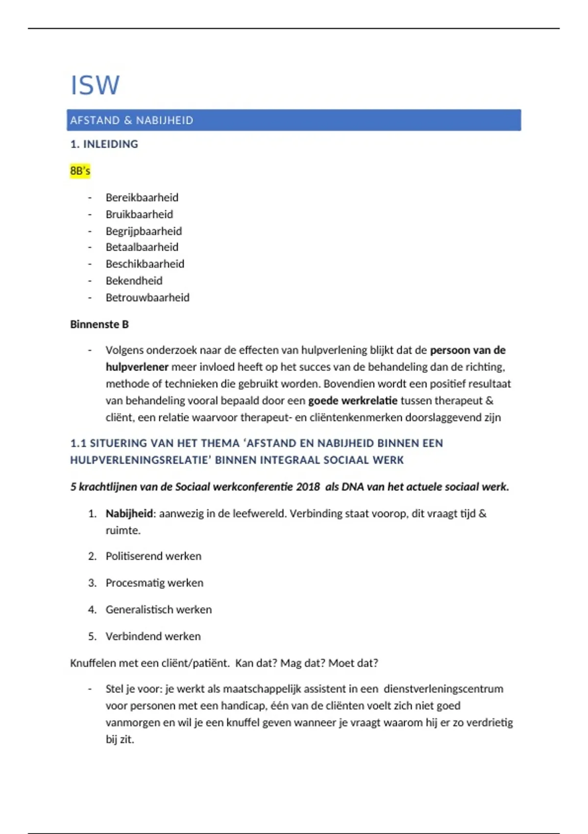 - nabijheid nodig: zorgt dat de cliënt zich begrepen voelt, creëert ruimte voor het