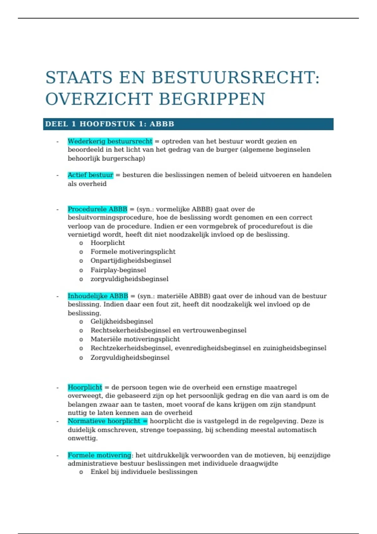 Een alomvattende samenvatting van de slides van het vak Staats- en Bestuursrecht gegeven in het 3e jaar door docent Naomi Blomme. Het is gedetailleerd en bevat verwijzingen naar de codex. Goed te combineren met mijn begrippenlijst (ander document) om begrippen te vergelijken en uit te leggen die aan bod komen in de samenvatting.