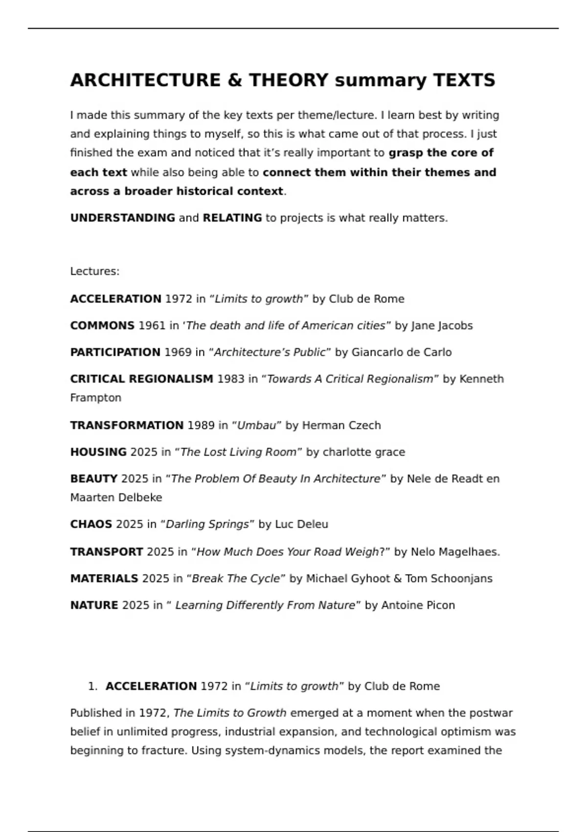 I made this summary of the key texts per theme/lecture. I learn best by writing and explaining