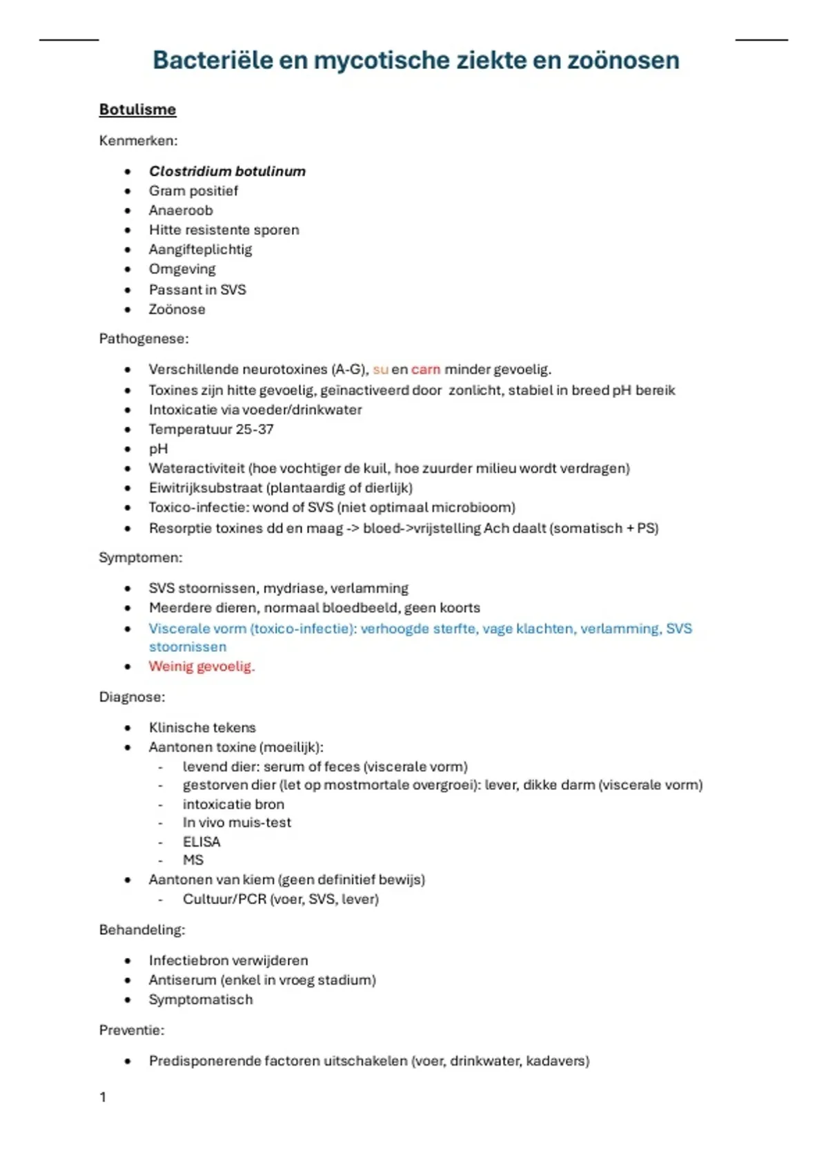 • Verschillende neurotoxines (A-G), su en carn minder gevoelig.