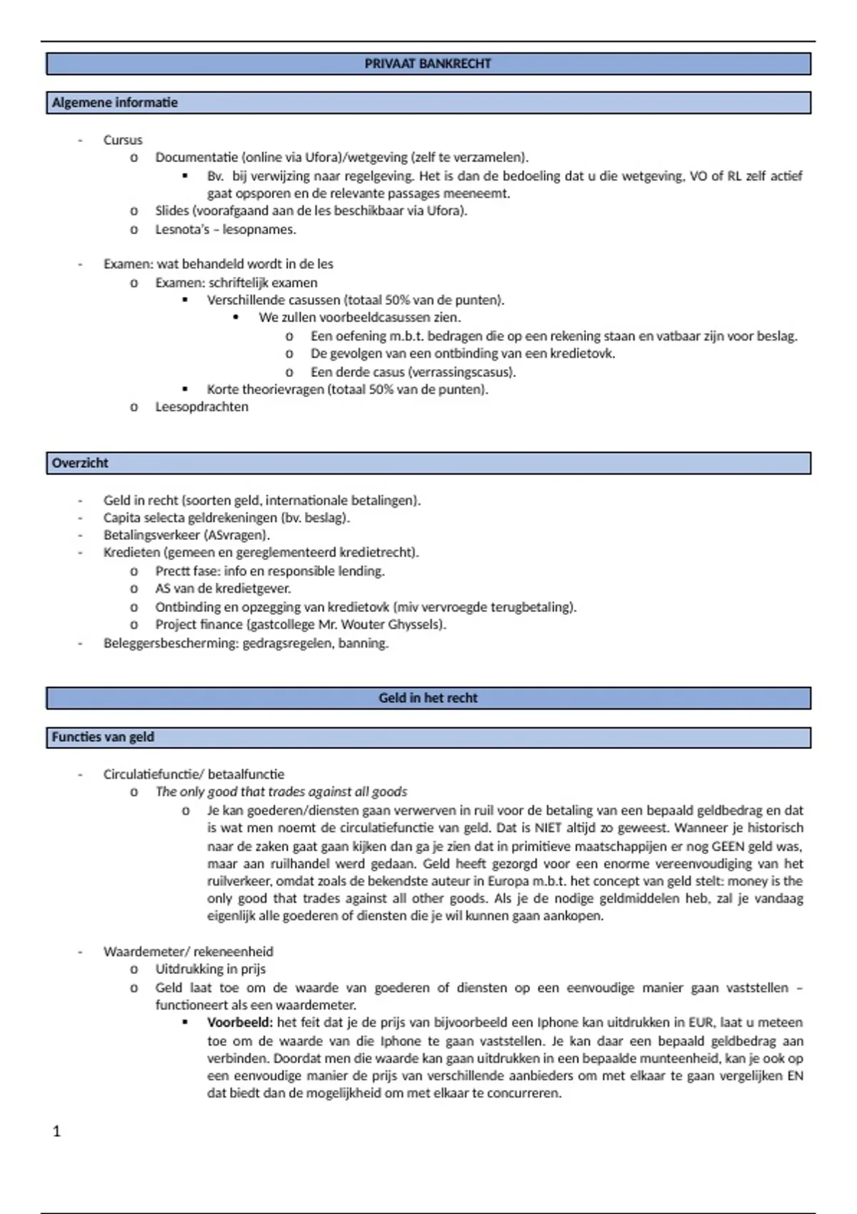 - Geld in recht (soorten geld, internationale betalingen).