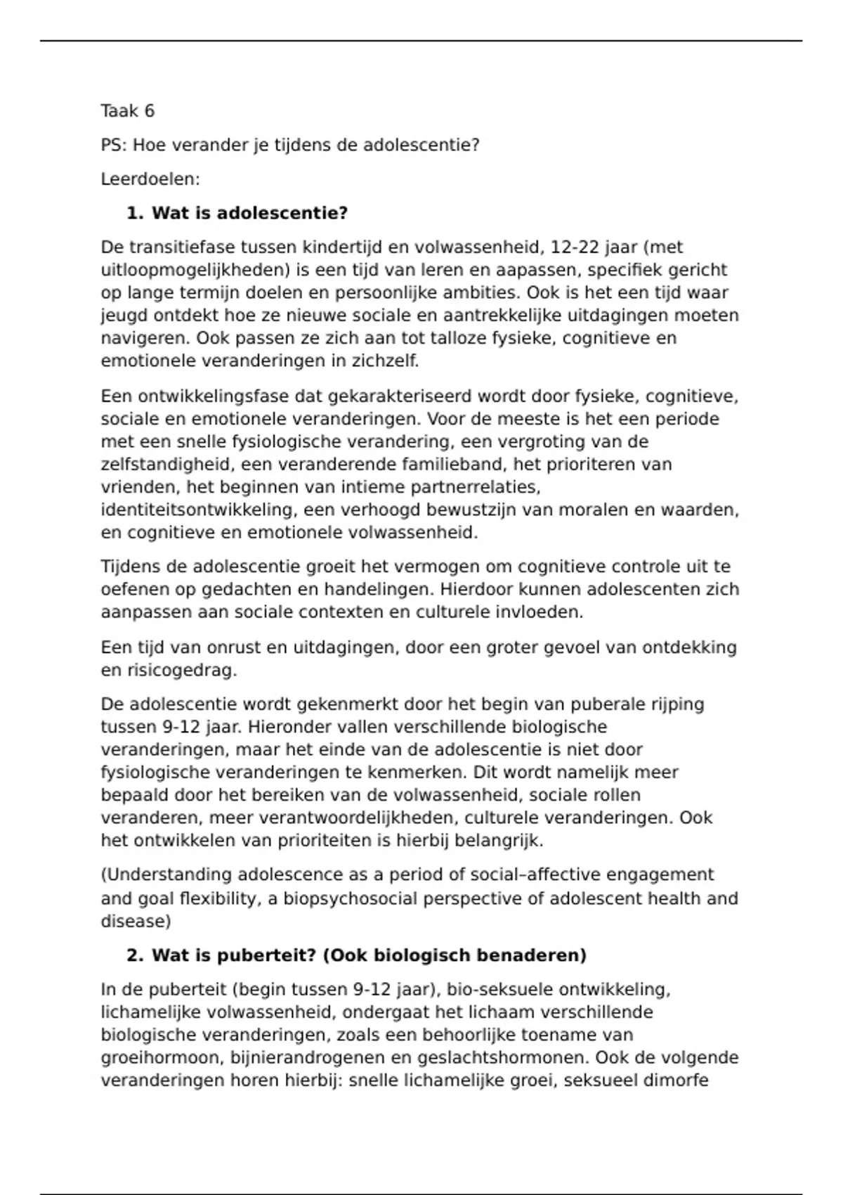 2. Wat is puberteit? (Ook biologisch benaderen)