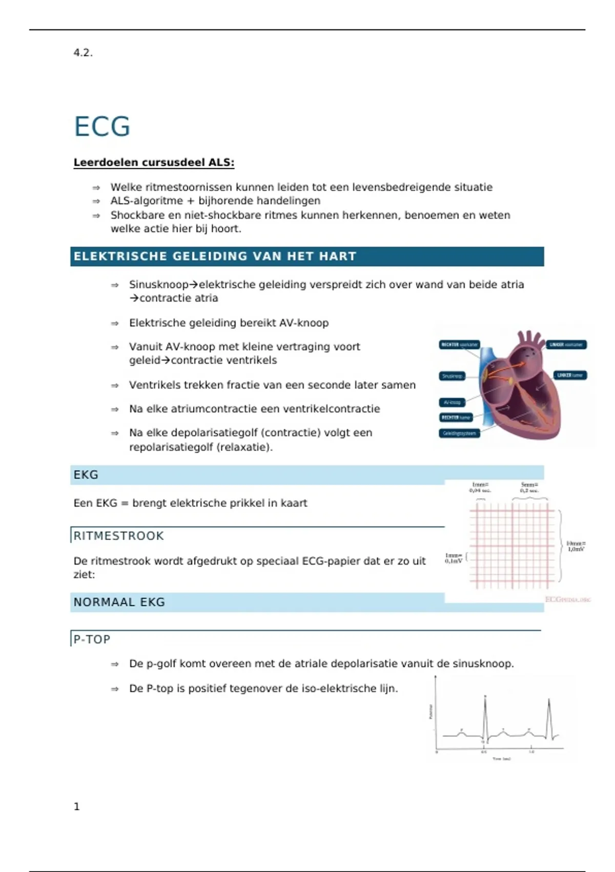  Het ST-segment komt overeen met de relaxatie van de ventrikels en ligt in