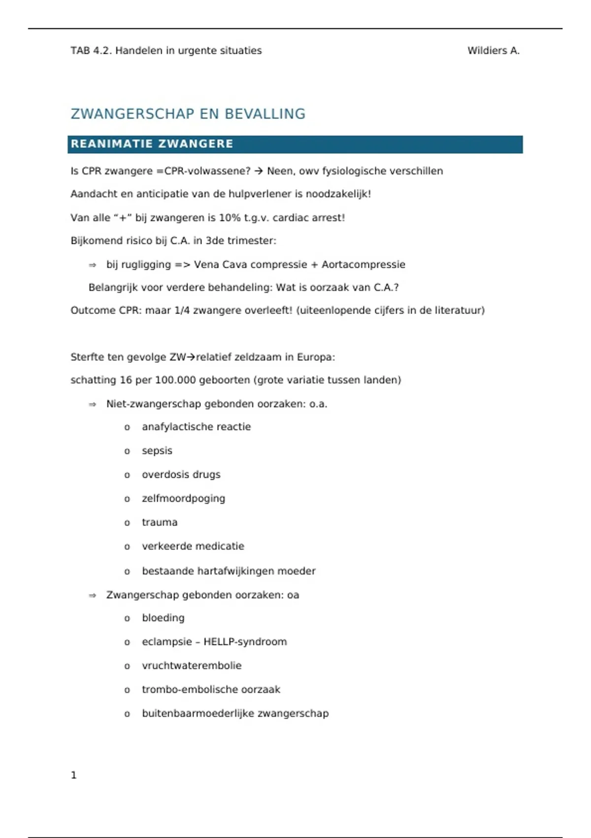 Van alle “+” bij zwangeren is 10% t.g.v. cardiac arrest!