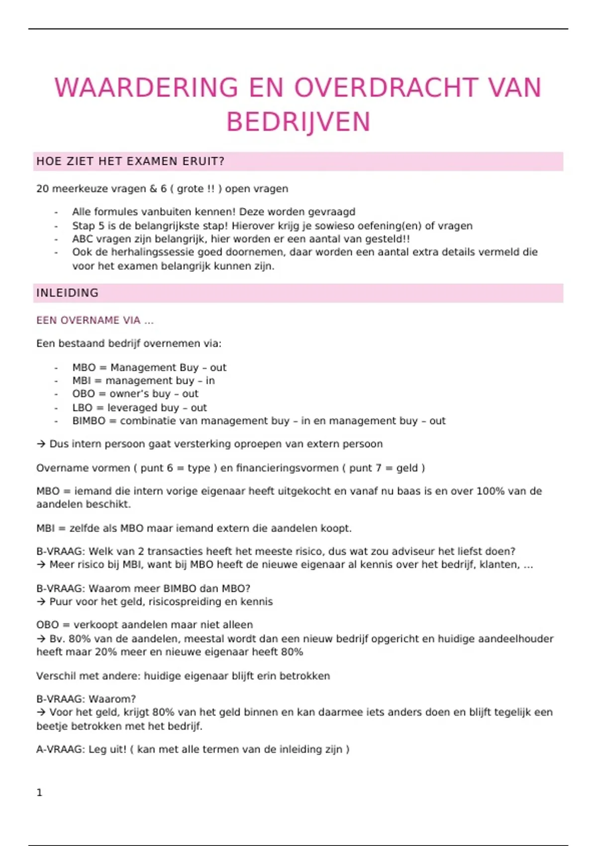 Waardering en overdracht van bedrijven ( volledige samenvatting )