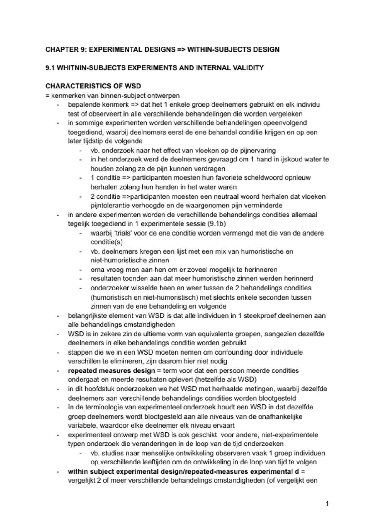 -​ In de terminologie van experimenteel onderzoek houdt een WSD in dat dezelfde