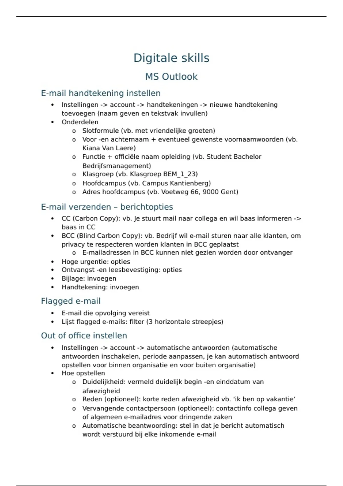 notities uit de les + extra uitleg oefeningen