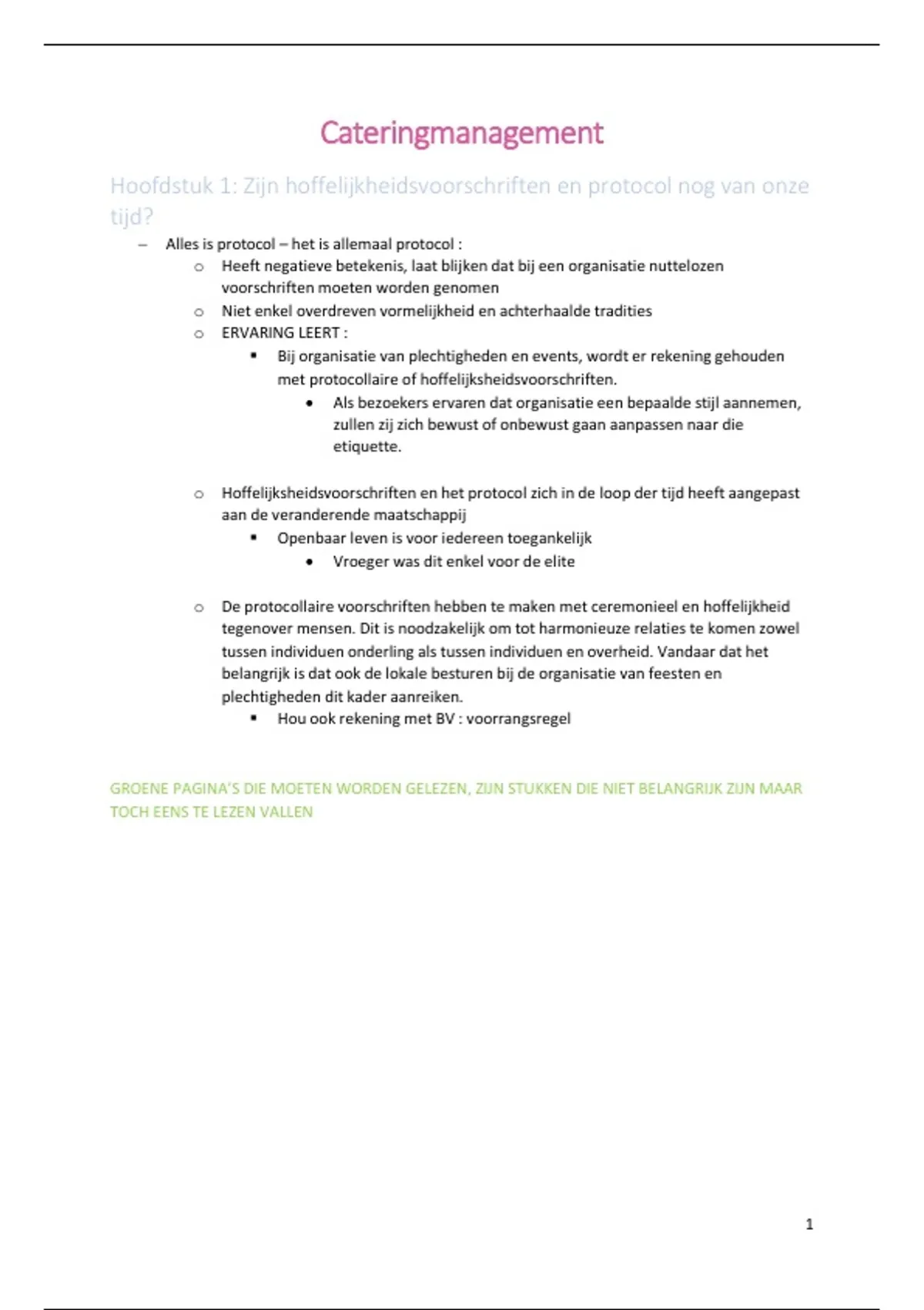 Volledige samenvatting van cateringmanagement. Focus ligt op zowel powerpoints als boek. Met deze samenvatting een 15/20 gescoord.