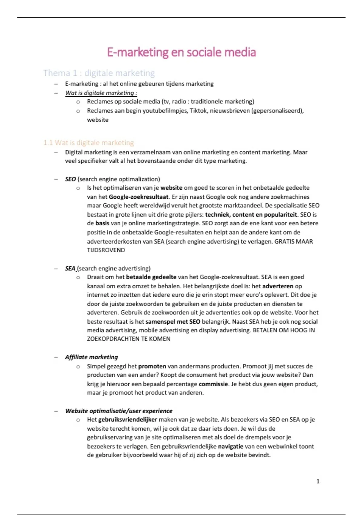 Dit is een volledige samenvatting van E-marketing en sociale media.