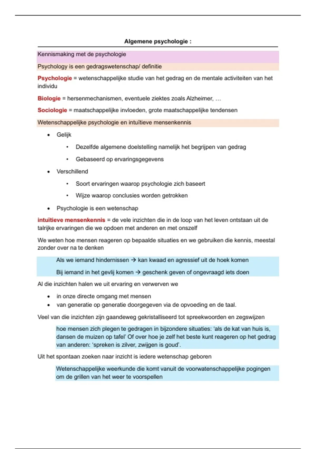 Psychologie = wetenschappelijke studie van het gedrag en de mentale activiteiten van het