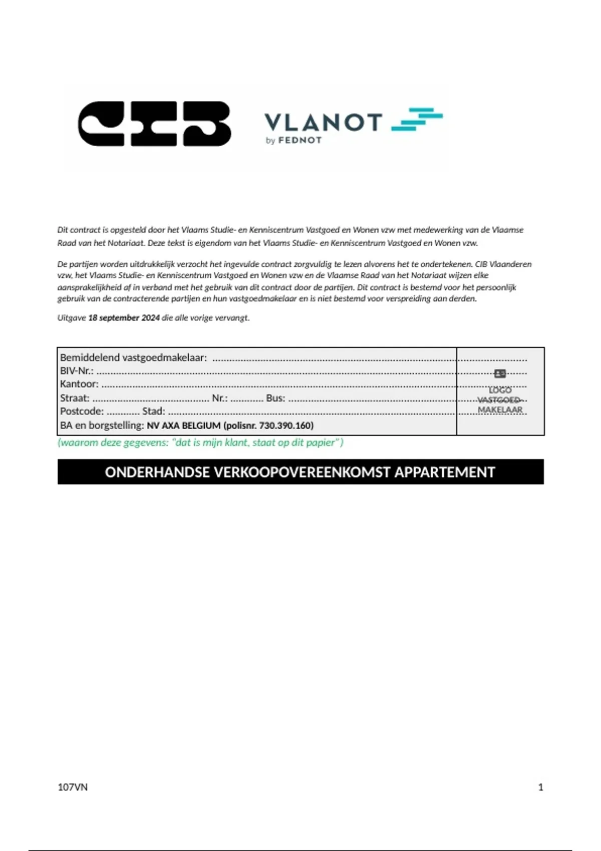De partijen worden uitdrukkelijk verzocht het ingevulde contract zorgvuldig te lezen alvorens het te ondertekenen. CIB Vlaanderen