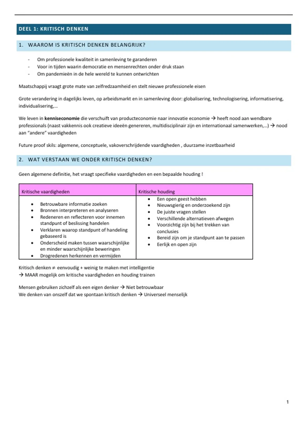 1. WAAROM IS KRITISCH DENKEN BELANGRIJK?